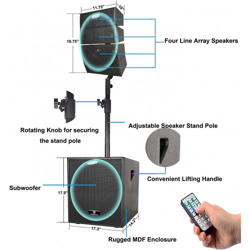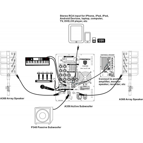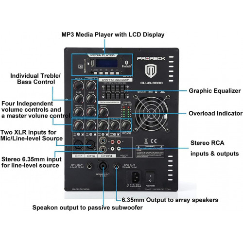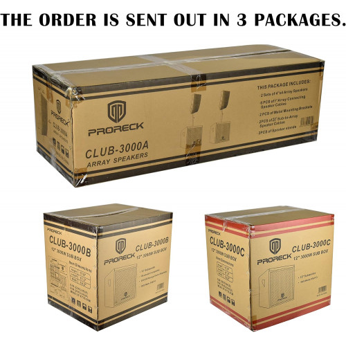 PRORECK Club 3000 - Sistema de Altavoces de 12 Pulgadas, 3000 W, DJ/Pap, con Bluetooth, USB/Tarjeta SD/Mando a Distancia (Dos subwoofers y 8 Altavoces Array).