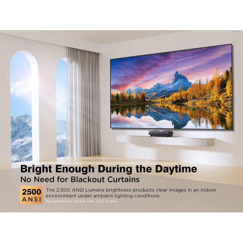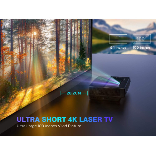 Proyector 4k Tiro Ultracorto TV, Dolby Audio 2500 ANSI Lumen, HDR 10 MEMC Operación Silenciosa 25dB 30.000 Horas, Relación de Contraste Dinámico de 15.000: 1, Pantalla Grande de 100 Pulgadas.