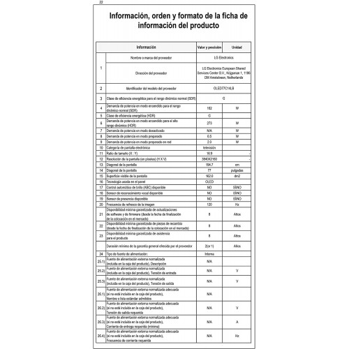 | Servicios de Internet compatibles | Alexa, Google Assistant, LG ThinQ |