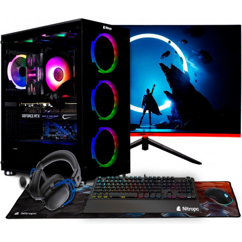 Nitropc - Pack Nitro Plus PC Gaming completo Intel i9 12900K 16/24 5.2GHz, RTX 4070 12GB, RAM 32GB, M2 1TB + HDD 2TB, Windows 11, RGB WiFi, monitor curvo 27", teclado, ratón, cascos PC sobremesa.