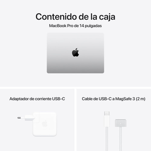 • CONECTA LO QUE QUIERAS — Este MacBook Pro incorpora tres puertos Thunderbolt 5, un puerto de carga MagSafe 3, ranura para tarjetas SDXC, puerto HDMI y toma para auriculares. Y puedes añadir hasta dos monitores externos con el chip M4 Pro y hasta cuatro con el M4 Max.